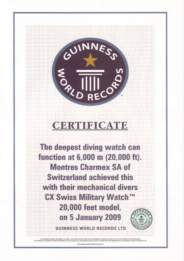 The ONLY Swiss Made Automatic Watch, to hold a WORLD RECORD in deep sea diving