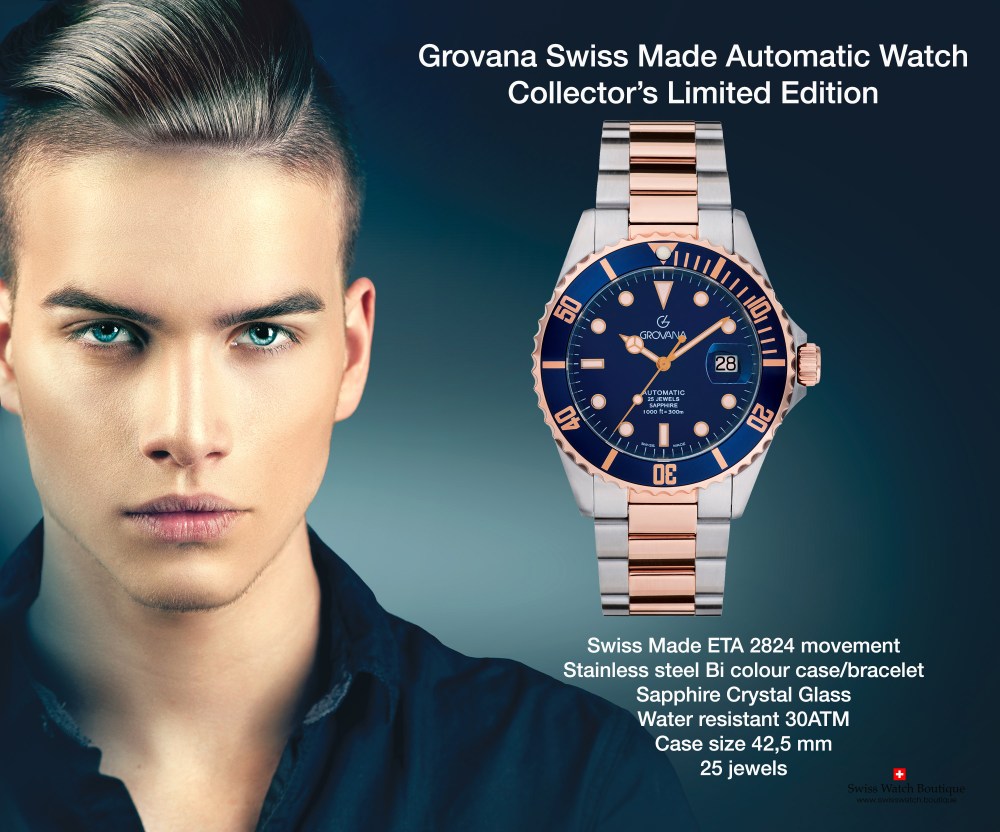Grovana Swiss Made Automatic Collector’s Limited Edition Watch, another one of the finest collections Swiss Automatic Watch by Grovana, targeting the luxury high end privilege few, who demand authentic and collector’s limited edition Swiss Made Automatic Watch