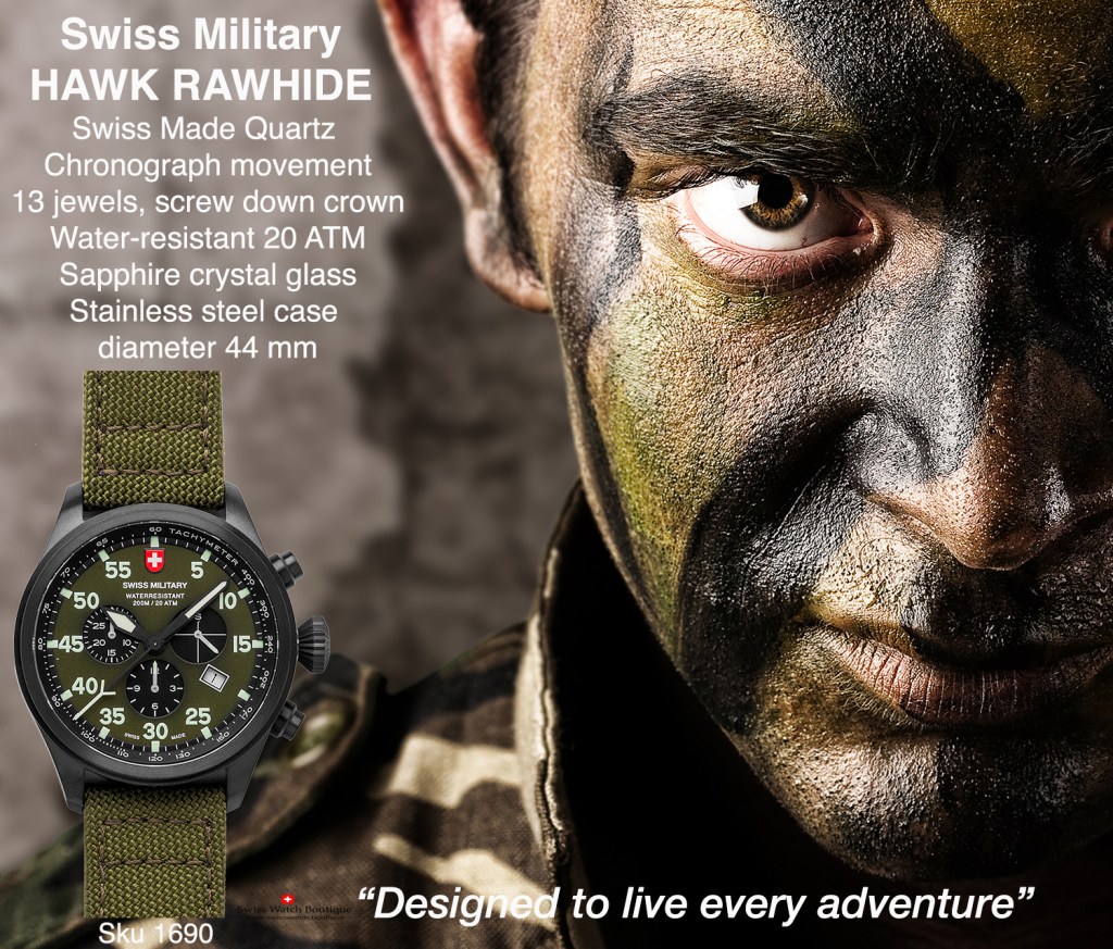 What could be more suitable than to name a military grade pilot’s watch after this predatory bird whose mere name strikes lesser fowl with panic! Our model HAWK is distinguished by its oversized pilot’s crown, the easily readable dial and the choice between a metal bracelet and a heavy duty, leather lined canvas strap