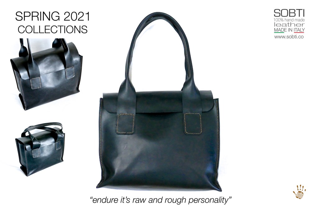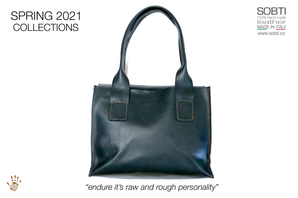 Presently, the SPRING 2021 collections from Sobti ™ Handmade Italian Leather Bag, made to order / Bespoke, using the finest Italian vegetable tanned leather, sourced from tanneries registered with the Italian Vegetable tanned leather consortium and, cotton waxed thread from Italy. This bag has one large section, meaning, one pocket and is sized 40cm x 30cm x 15cm, ideally, a perfect carry on bag with most air-lines, and, a perfect size for our daily needs, be it at work, or just with our lifestyle. Available in 10 different colours, this, bag truly defines our style to fashion with its raw, rough texture.