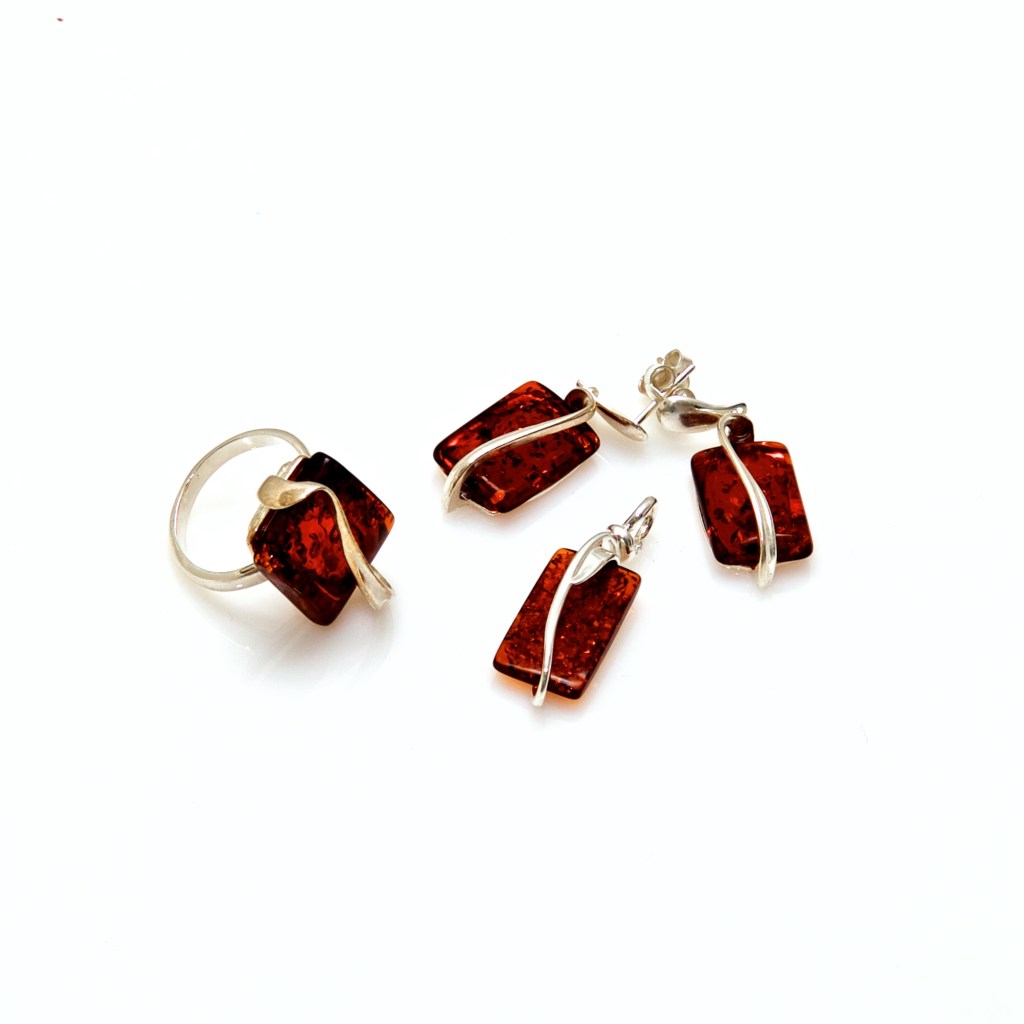 - The Natural Baltic Amber Pendant Set & Ring Made in Poland