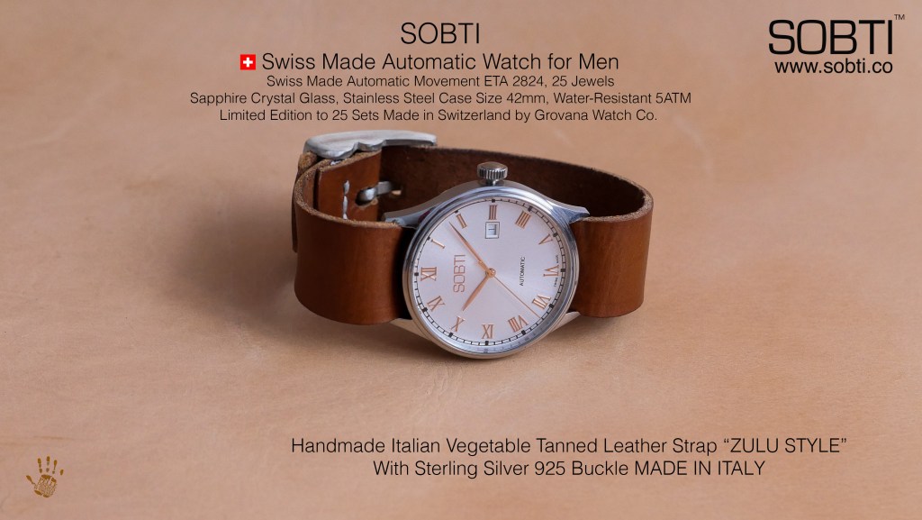 Discover timeless elegance with the Sobti Swiss Made Automatic Watch – a limited edition of 25 sets, crafted in Switzerland with ETA movement. Pair it with bespoke Italian handmade leather straps, luxury Sobti handmade designer bags, and artisan silver & gemstone jewelry. A legacy of fashion, style, and craftsmanship.