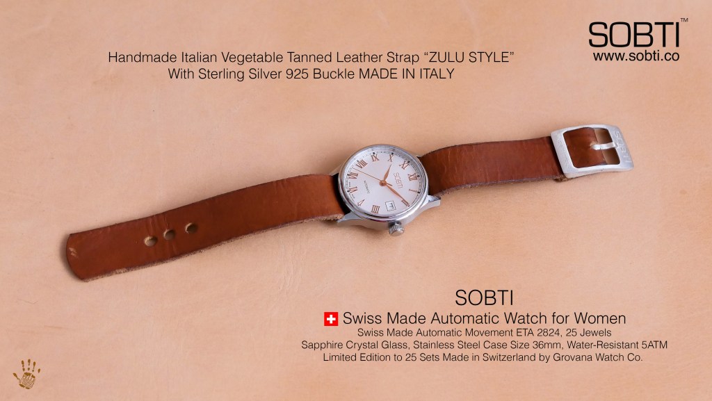 - The Sobti Handmade Italian Vegetable-Tanned “Zulu Style” Leather Strap with Sterling Silver 925 buckle