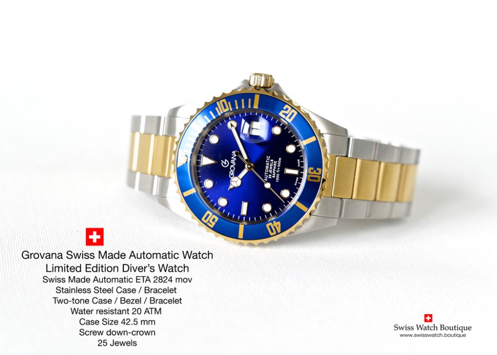 Grovana Swiss Made Automatic Watch, limited edition, available exclusively from our online Swiss Watch Boutique