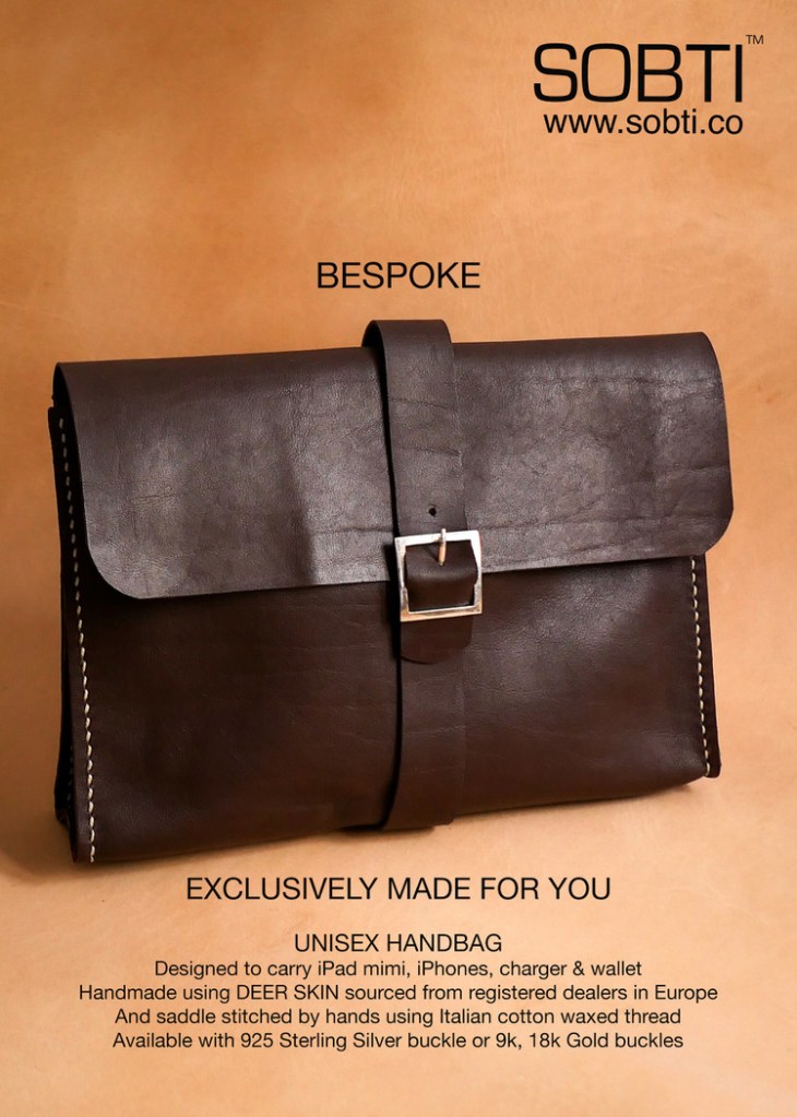 Sobti Bespoke Handmade Designer Leather bag, made to order, using the finest vegetable tanned leather from Italy or even exotic leather, sourced from registered dealers in Europe. Available on orders from our online Handmade Leather Boutique