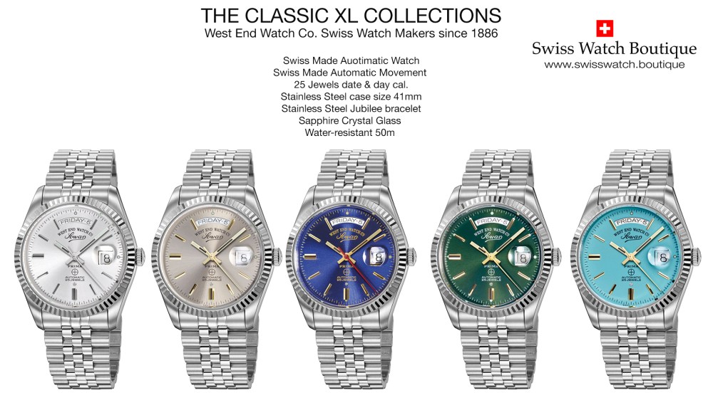 Explore Our Collection of Swiss Automatic Day-Date Watches by West End Watch Co. Swiss Watch makers since 1886, and a company registered with The Swiss Watch Federation, thus, assuring You some of the finest Swiss Made Watch for Men and Women.